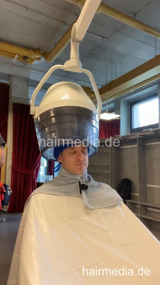 Transform your look with our daring 2012 Berlin salon xmas perm video! Watch as a man takes a risk and gets a permed hairstyle under a dryer in this video. Are you ready for a bold and challenging new style? Get inspired with this proof of daring!