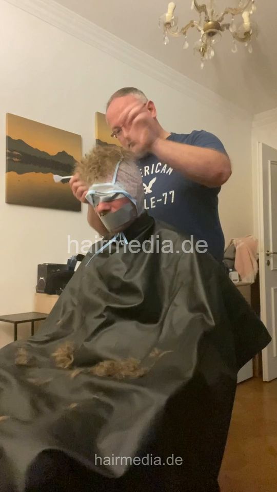2012 240620 home salon mouth protected buzz and cap highlighting torture