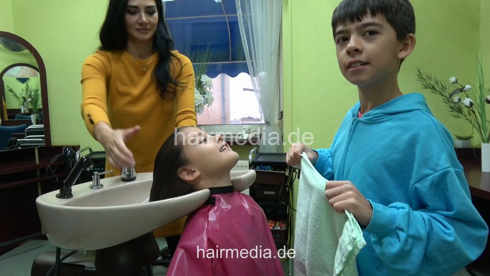 2308 Daughter Lia 2 young girl backward wash in standing position and blow out