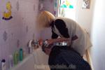 237 barber by Marlene shampooed forward over bathtub forward in apron