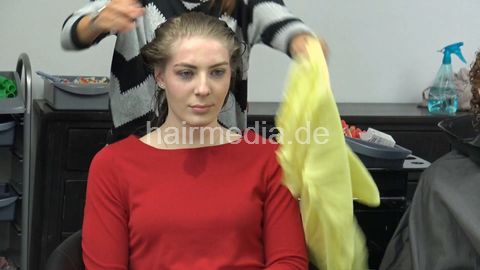 eine Frau bekommt Dauerwellenwickler und dann Schaumfestiger aufgetragen, die zweite bekommt größere Lockenwickler, im Anschluss beide unter verschiedenen Hauben