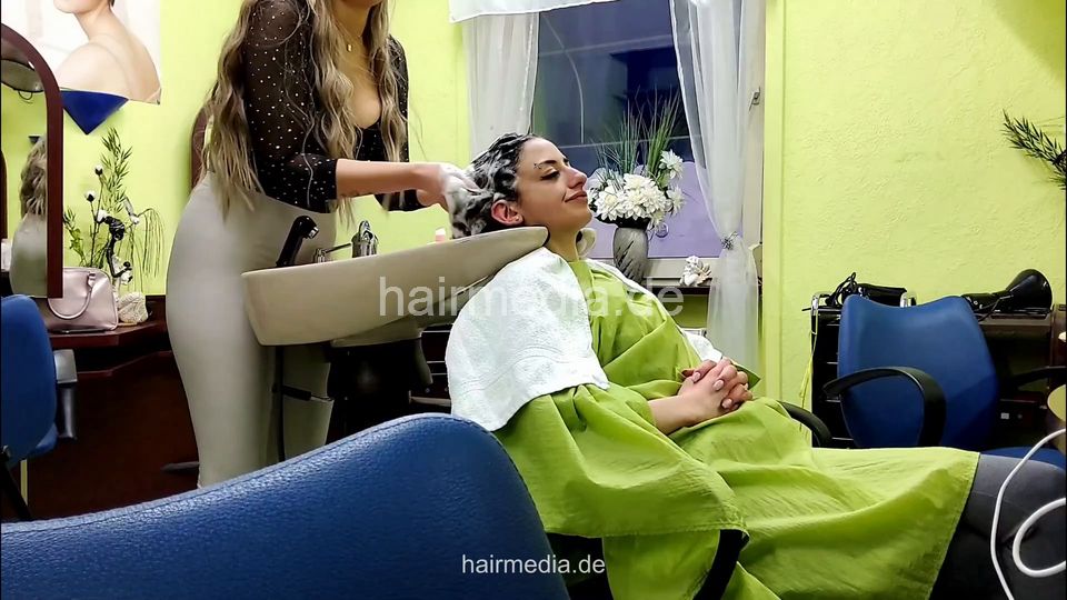 6225 Leyla 1 by MichelleH shampooing hairwash in leatherpants - sidecam