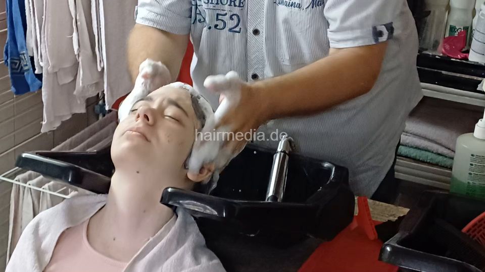 - JanaK. Was a model before, an intro and shampoo scene filmed, from the last session I had. Shampooed by barber.