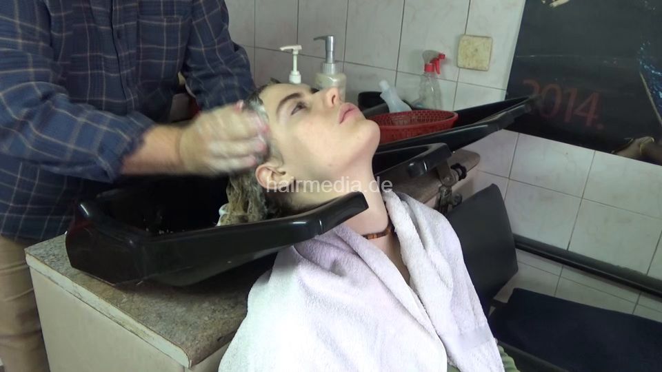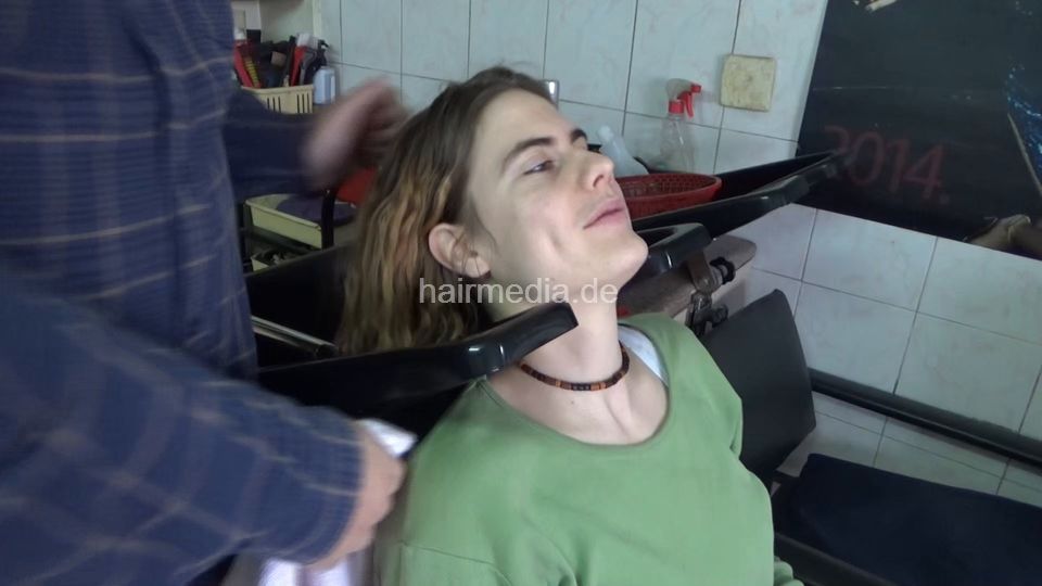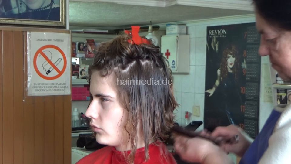 IvanaK was a model before and she is having a haircut and a wetset, shampooed by an old lady barber.