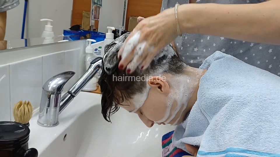 - Jovana. Short hair, was a model before, only forward shampoo scene at the barbershop with barber JelenaB.