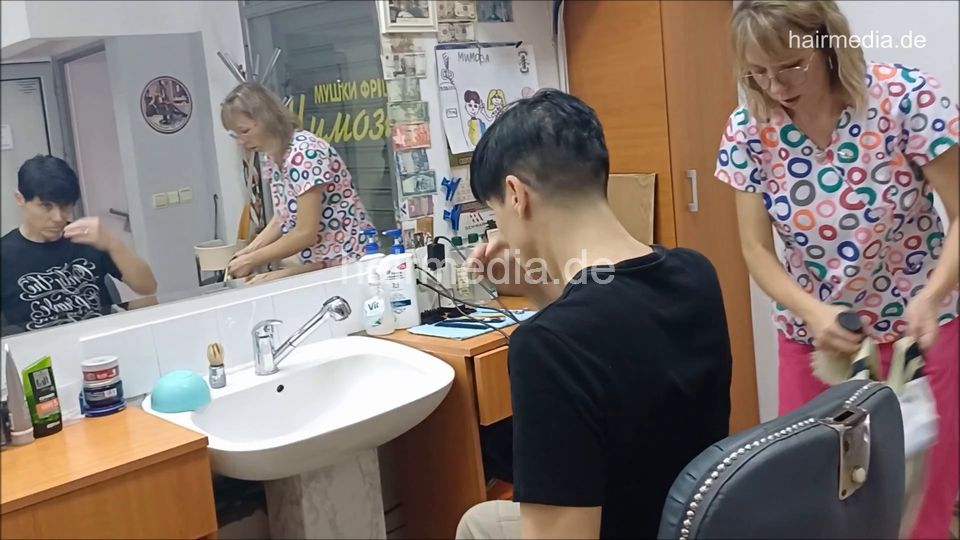8402 Vera 2 forward shampoo hair ear and face in barbershop by female barber JelenaB