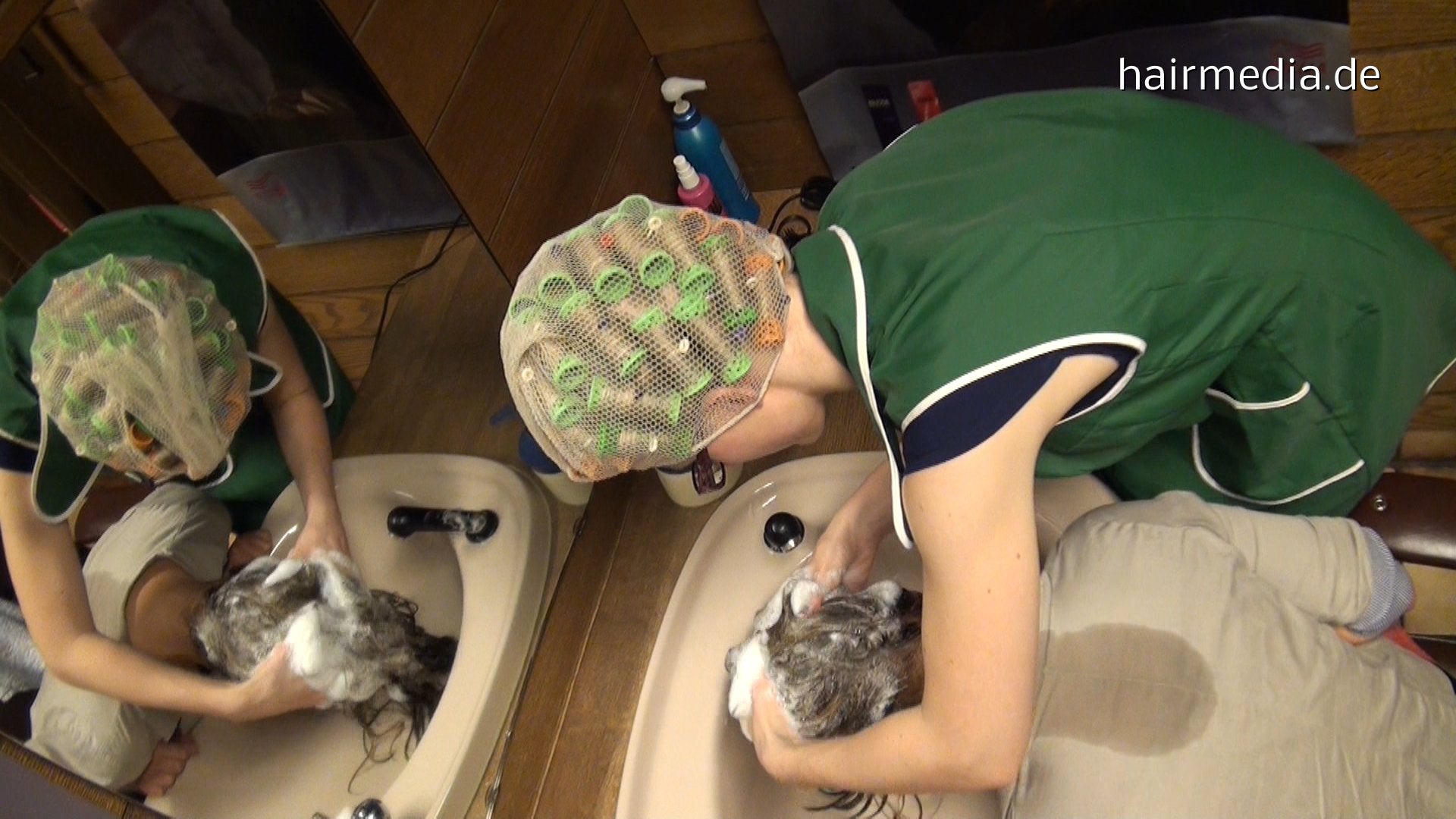 9063 7 VeronikaR strong forward shampoo hairwash by barberette Casey in rollers