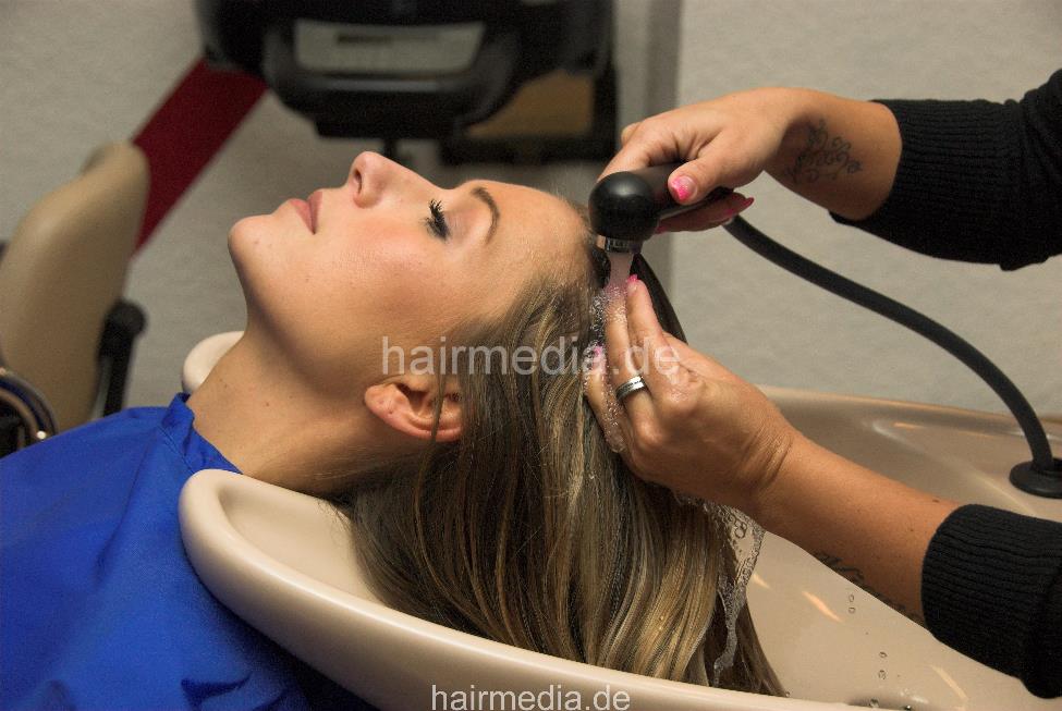 b023 KristinaB in boots 1 backward salon shampooing by nylonkittel barberette