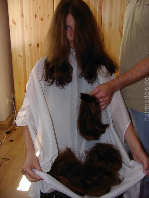 h065 Emy dry hair cut by hobbybarber in hotel, boyfriend watching