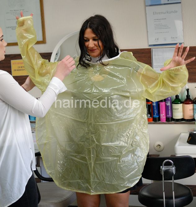 Inge TV unique large customer kimono shiny latex heavy tie closure saloncape e0134