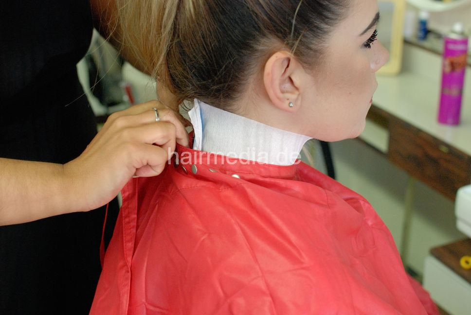 Inge TV unique large nylon vintage push button and tie closure shampoocape e0130