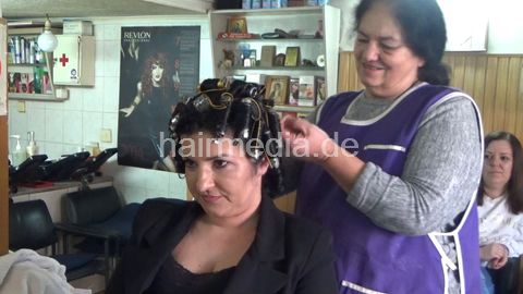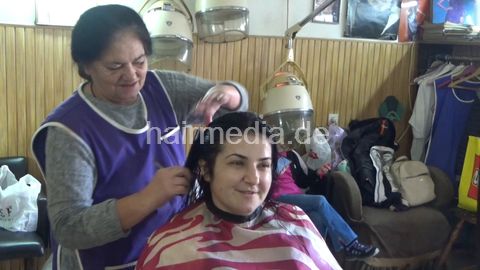 MarijaV is shampooed by old barber lady Ružica, then she has a wetset. Before she goes under the dryer, she is doing her makeup, also filmed. Her time under the dryer is covered only in background footage. You can find all those movie clips in her folder.